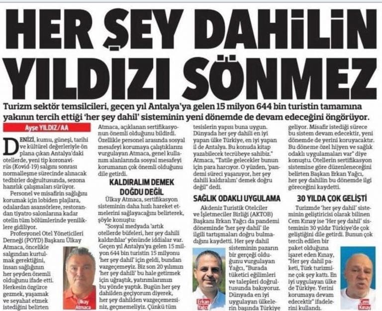 Turizmciler Her Şey Dahilde Israrcı